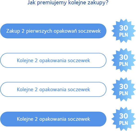 Od Ciebie zależy ile opakowań soczewek kontaktowych kupisz jednorazowo - za każdym razem otrzymasz zwrot odpowiedniej kwoty. Zwrot pieniędzy nastąpi zgodnie z Regulaminem Akcji Promocyjnej.